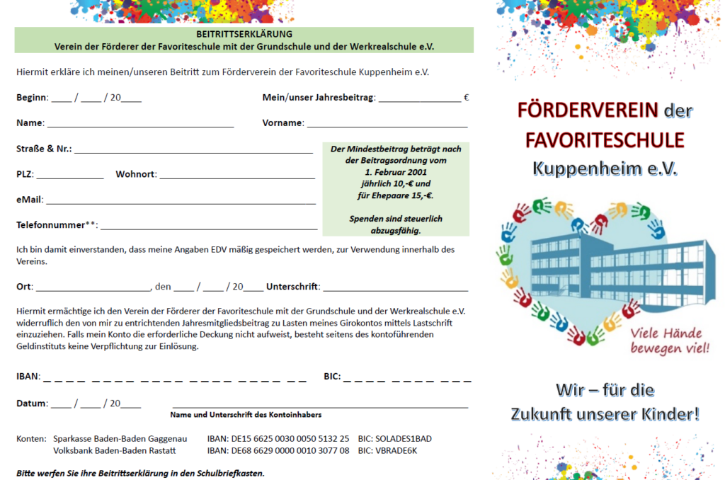 🌟 Unterstützen Sie Bildung, fördern Sie Zukunft! Werden Sie Mitglied im Förderverein der Favoriteschule Kuppenheim! 🌟